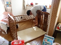 Yu-pinが寝返りが多くなり、足をはさむなどするので、ベビーベッドは片づけることにしました。分解できるとはいえ、置き場所をどうしようかと悩んでいます。これから必要な人が身近にいればなあ。