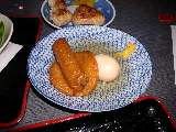 今日は愛地球博へ行かずに、宿泊している三河高原キャンプ村の近くにある牧場を散策したり、香嵐渓の近くにある岩神の湯で温泉やプールに入ったりして一日過ごしました。岩神の湯の食堂では、“おでん”のことを“関東煮”とメニューに書いてありました。夜になって、豊田市に合併された足助のおまつり“たんころりん”を見物に行きました。趣のある足助の古い町並みの各家々に行灯が灯されていて、なんとも不思議な空間でした。